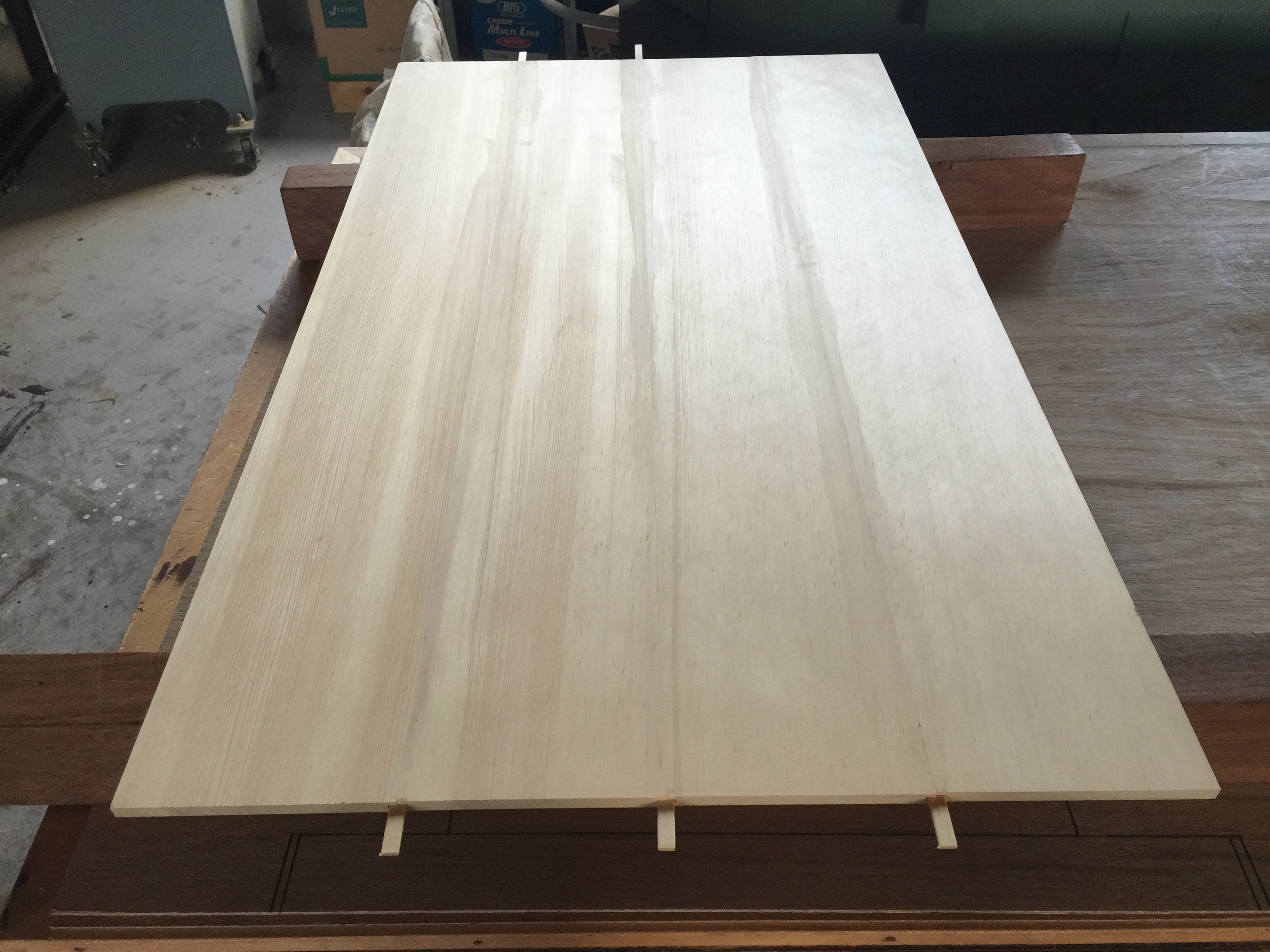 幅が広いほど高額なので、数枚貼り合わせています。 ・板の加工 「核矧ぎ(さねはぎ)」加工をしています。