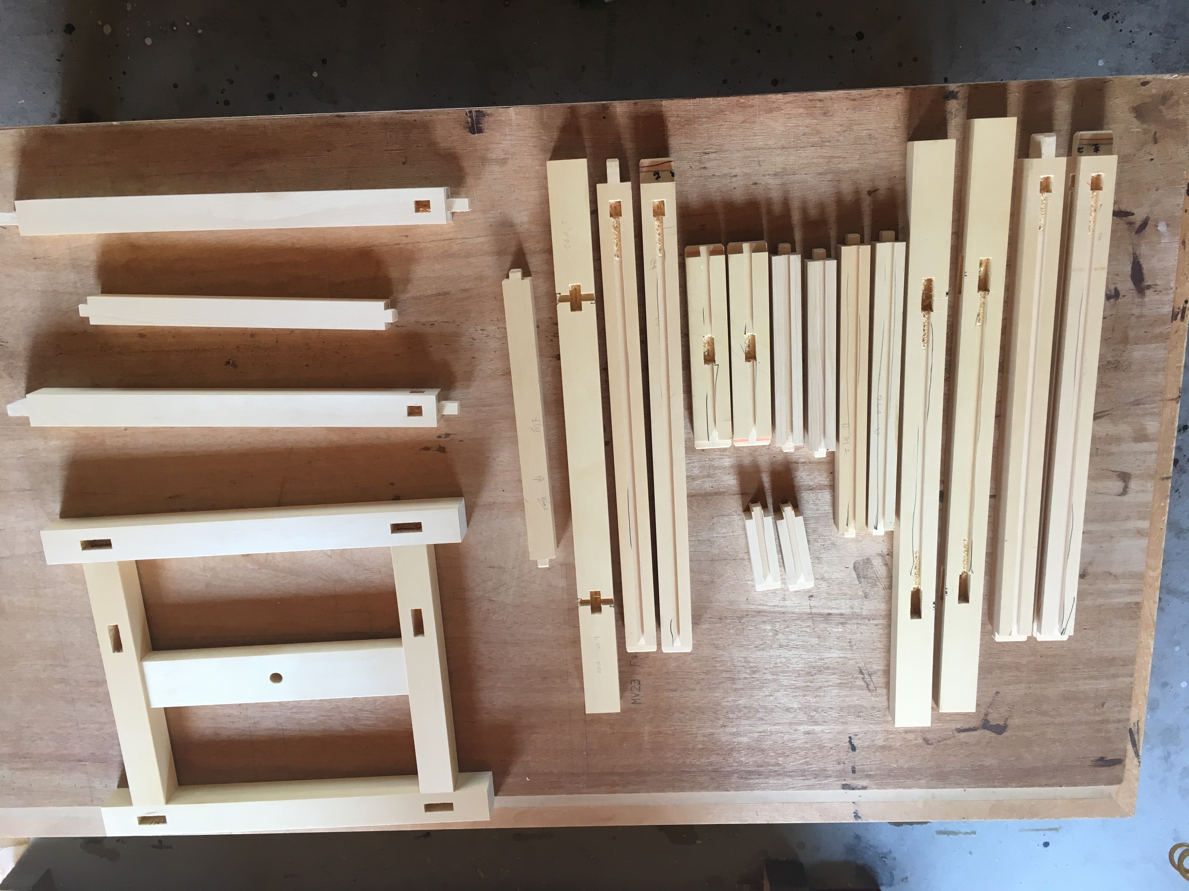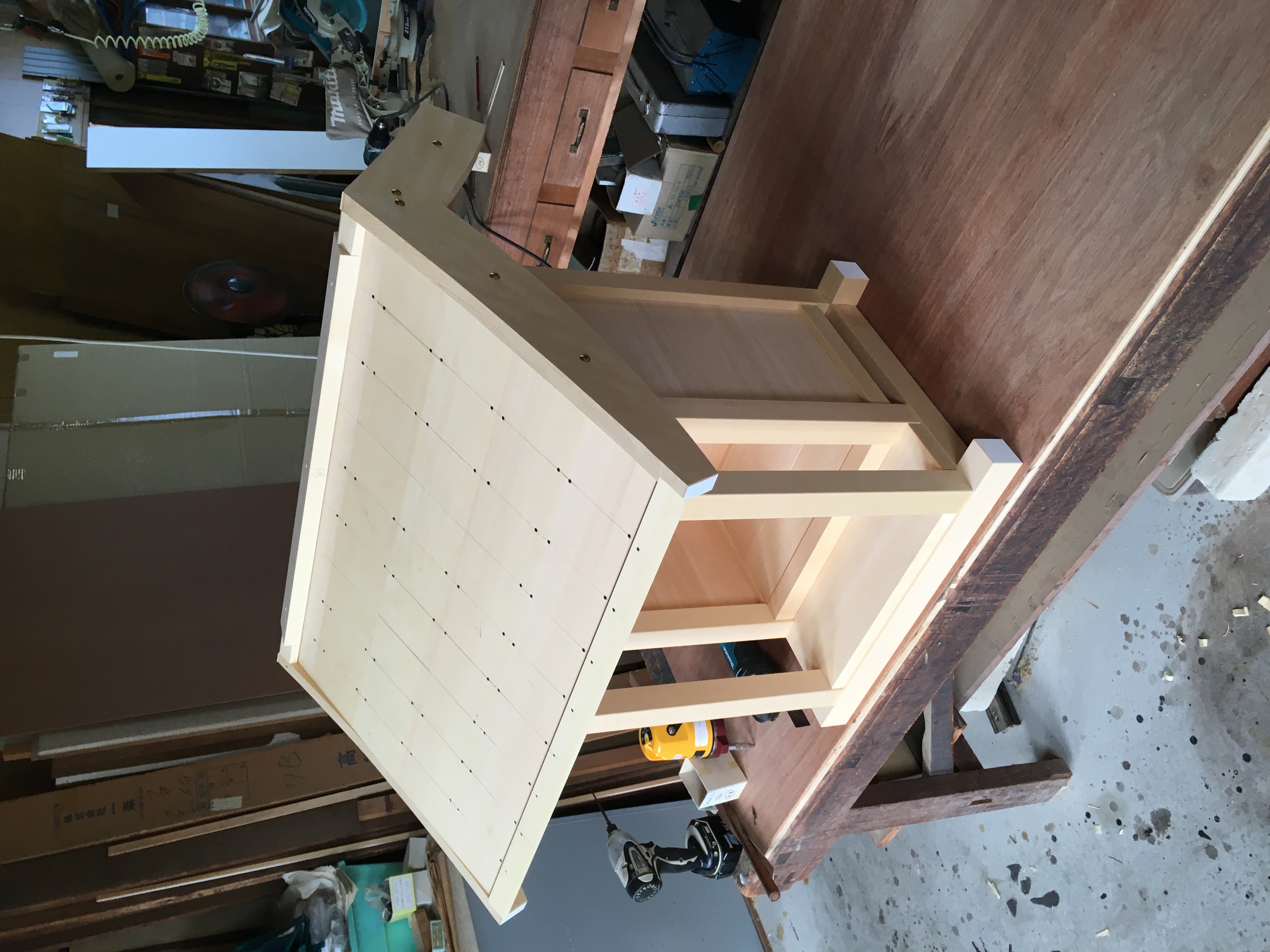 割れない限り、痩せても隙間が目立ちません。 ・本組み 各部材を「仕上げ」後、本格的に